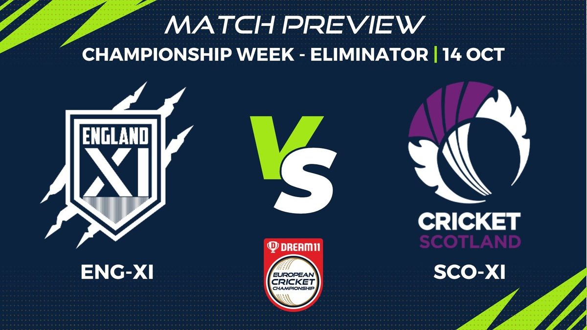CHAMPIONSHIP WEEK - ELIMINATOR, MATCH 22 (ECC22.118) ENGLAND XI (ENG-XI) v SCOTLAND XI (SCO-XI) 1130 GMT | 1330 CEST | 1700 IST