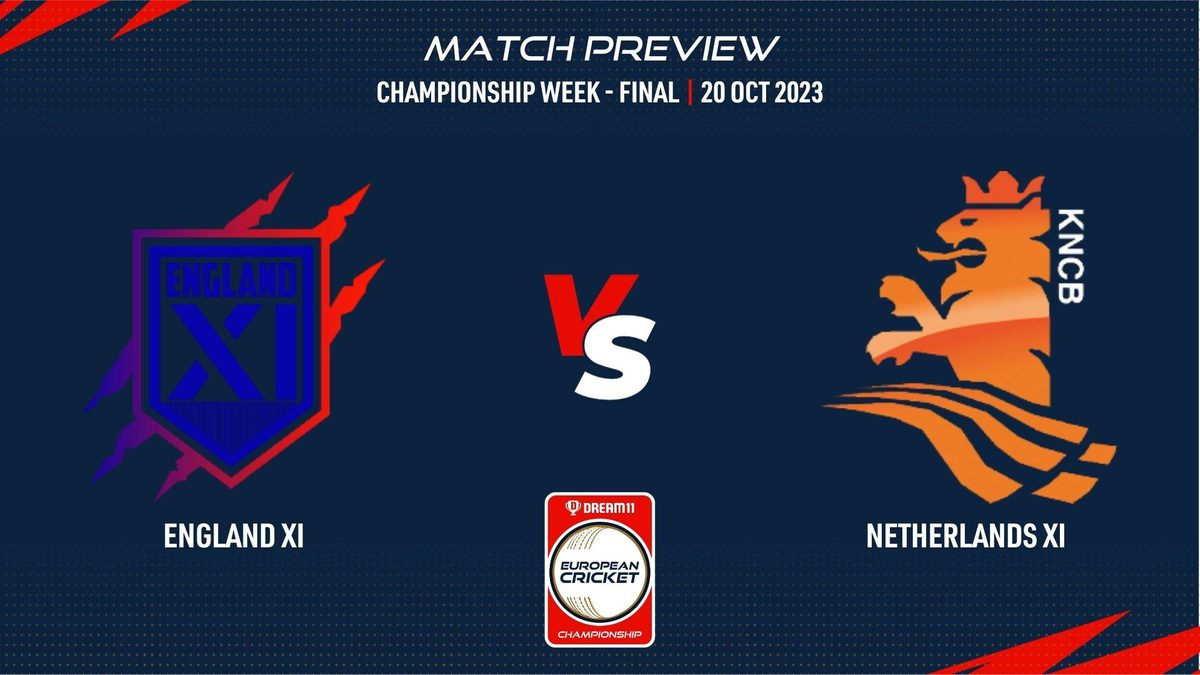 MATCH 25 (ECC23.109) ENGLAND XI vs NETHERLANDS XI 18:30 GMT | 20:30 CEST | 00:00 IST