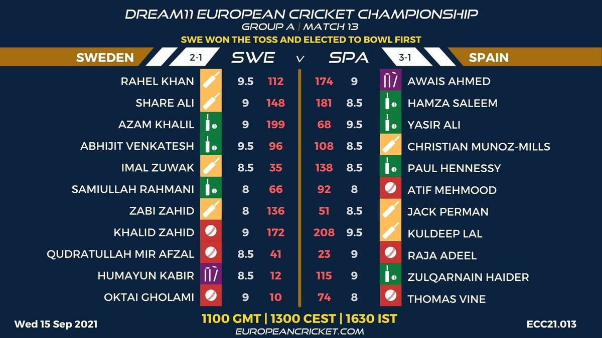 Spain won the reverse fixture on Tuesday when Sweden gifted the hosts too many extras in a 12-run defeat. Sweden will be looking to bounce back.