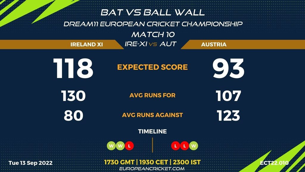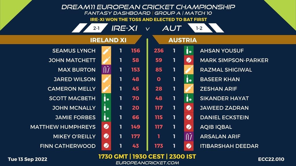 GROUP A, MATCH 10 (ECC22.010) IRELAND XI (IRE-XI) v AUSTRIA (AUT) 1730 GMT | 1930 CEST | 2300 IST