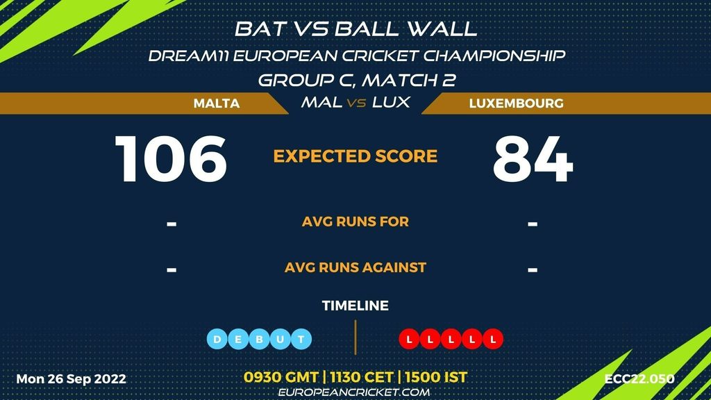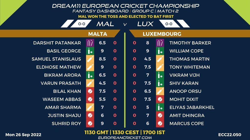 GROUP C, MATCH 2 (ECC22.050) MALTA (MAL) v LUXEMBOURG (LUX) 1130 GMT | 1330 CEST | 1700 IST