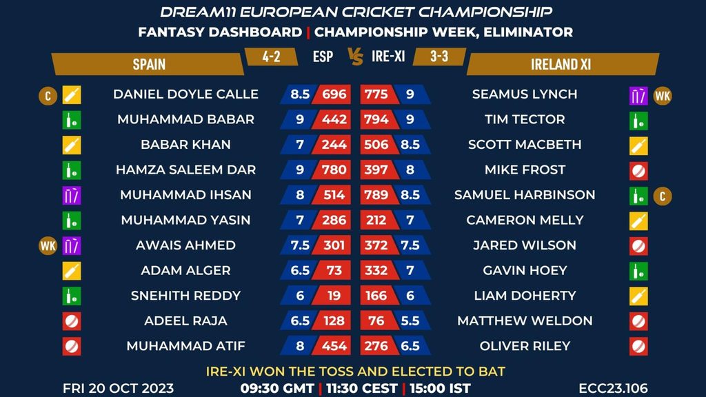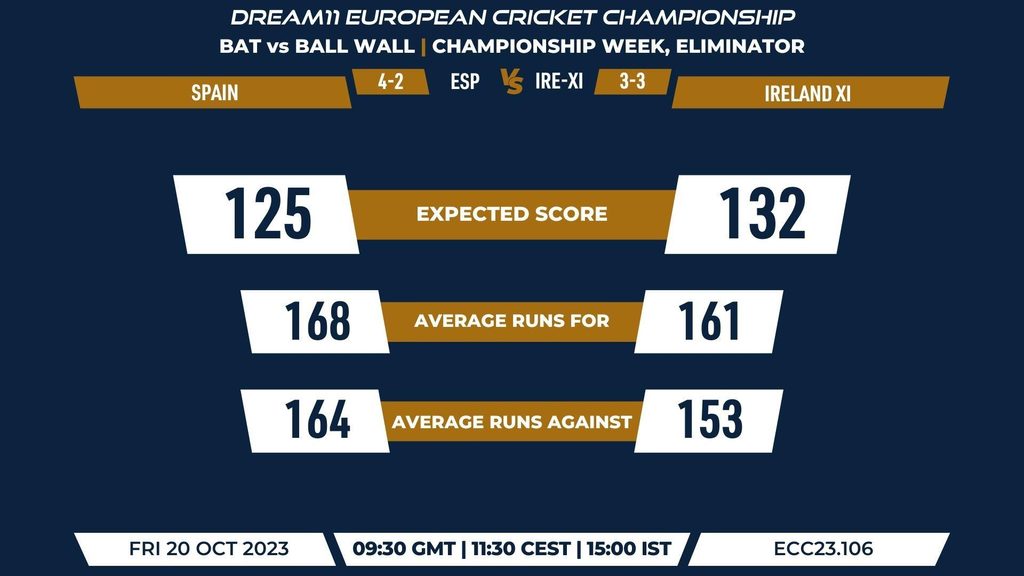MATCH 22 (ECC23.106) SPAIN vs IRELAND XI 09:30 GMT | 11:30 CEST | 15:00 IST