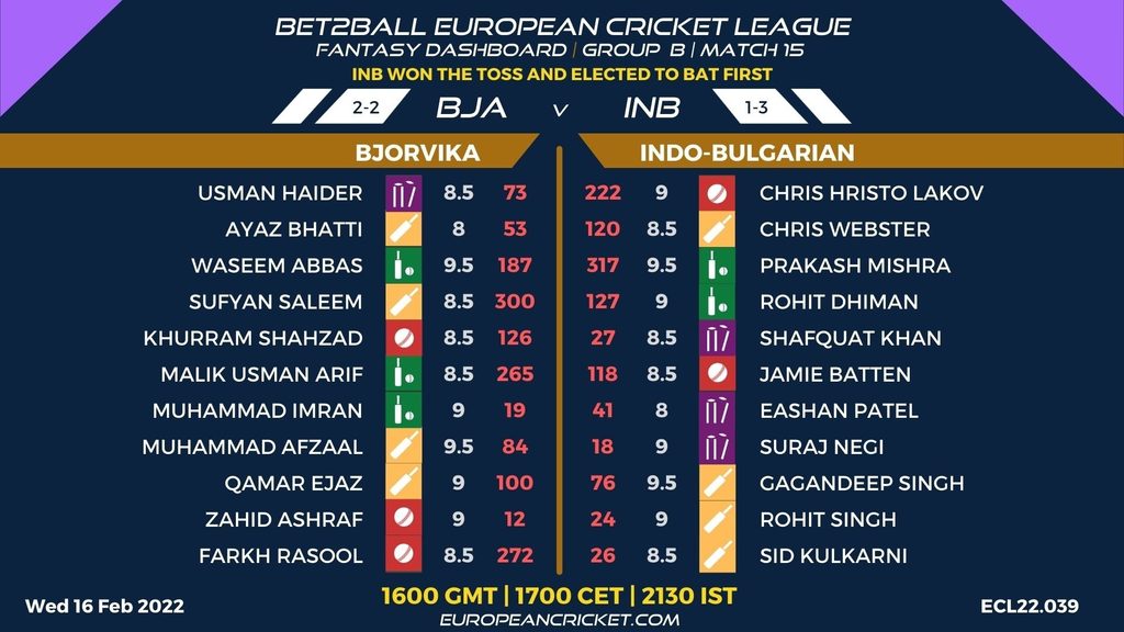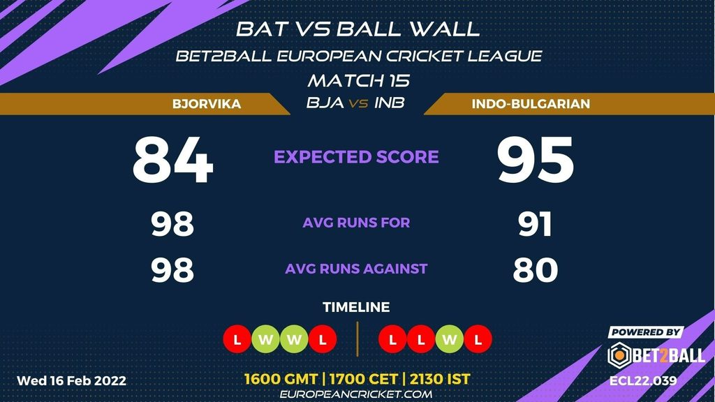 MATCH 15 (ECL22.039) BJORVIKA (BJA) v INDO-BULGARIAN (INB) 1600 GMT | 1700 CET | 2130 IST