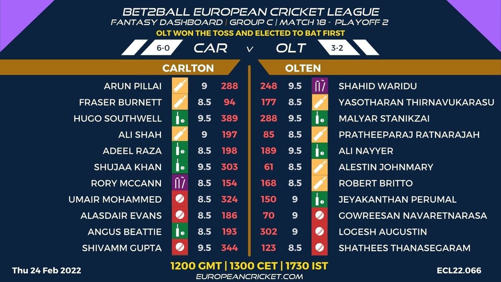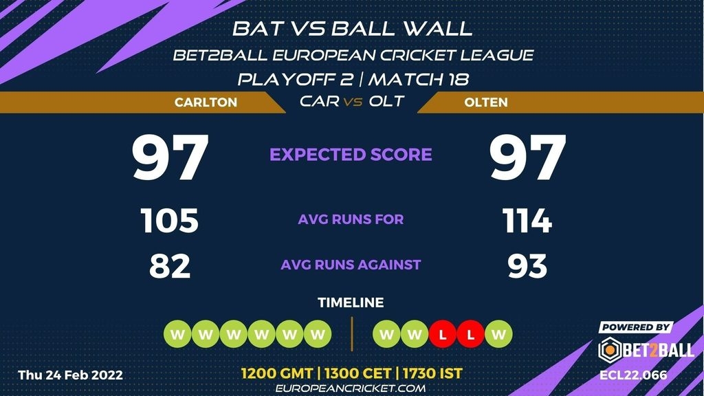 PLAYOFF 2 - MATCH 18 (ECL22.066) CARLTON (CAR) v OLTEN (OLT) 1200 GMT | 1300 CET | 1730 IST