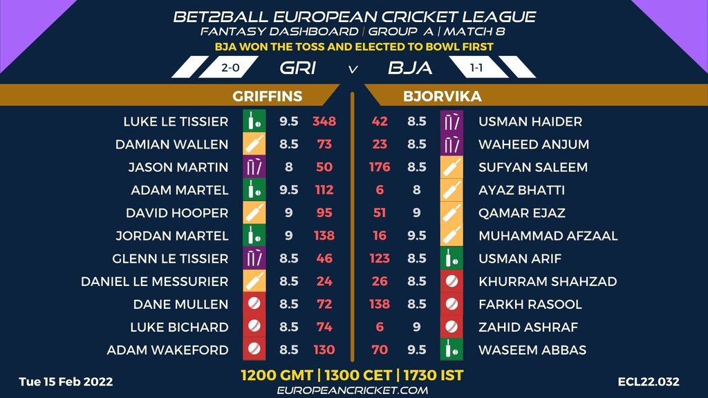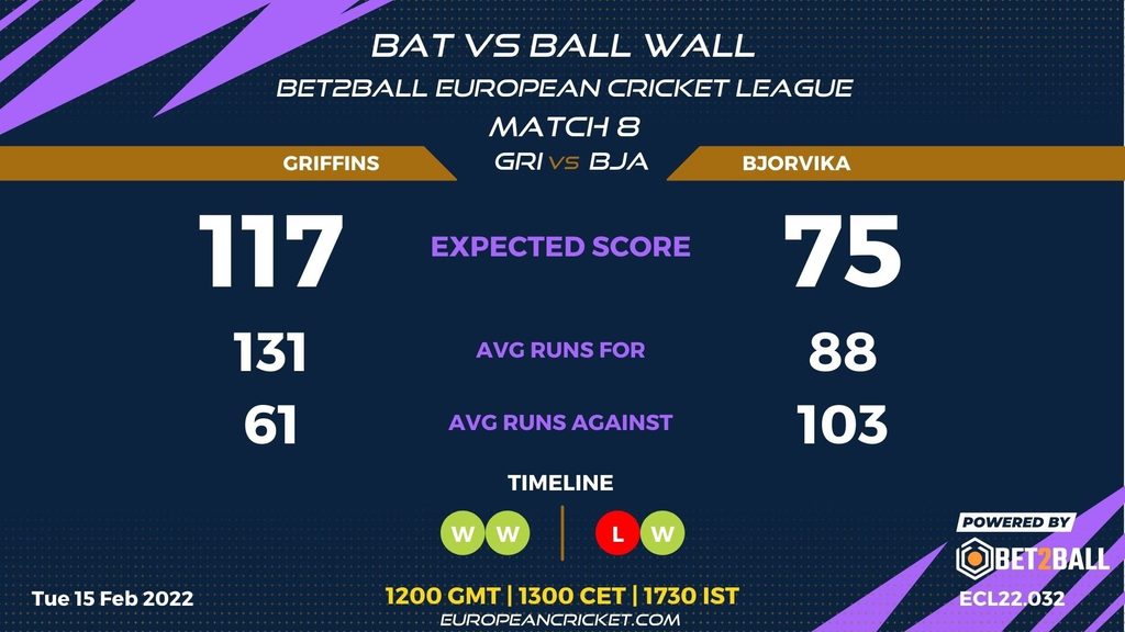 MATCH 8 (ECL22.032) GRIFFINS (GRI) v BJORVIKA (BJA) 1200 GMT | 1300 CET | 1730 IST