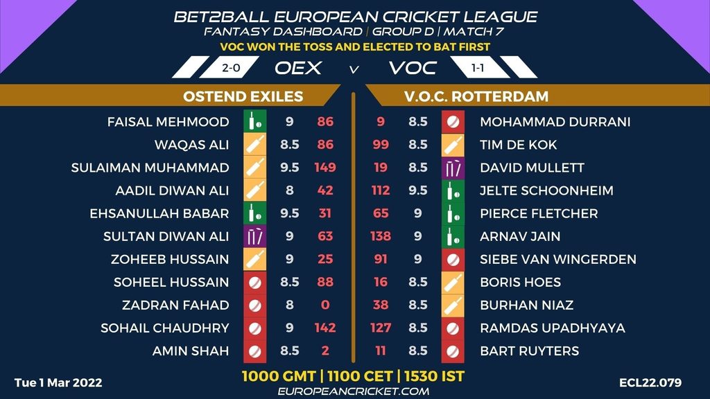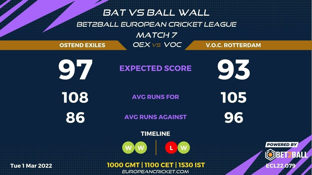 MATCH 7 (ECL22.079) OSTEND EXILES (OEX) v V.O.C. ROTTERDAM (VOC) 1000 GMT | 1100 CET | 1530 IST