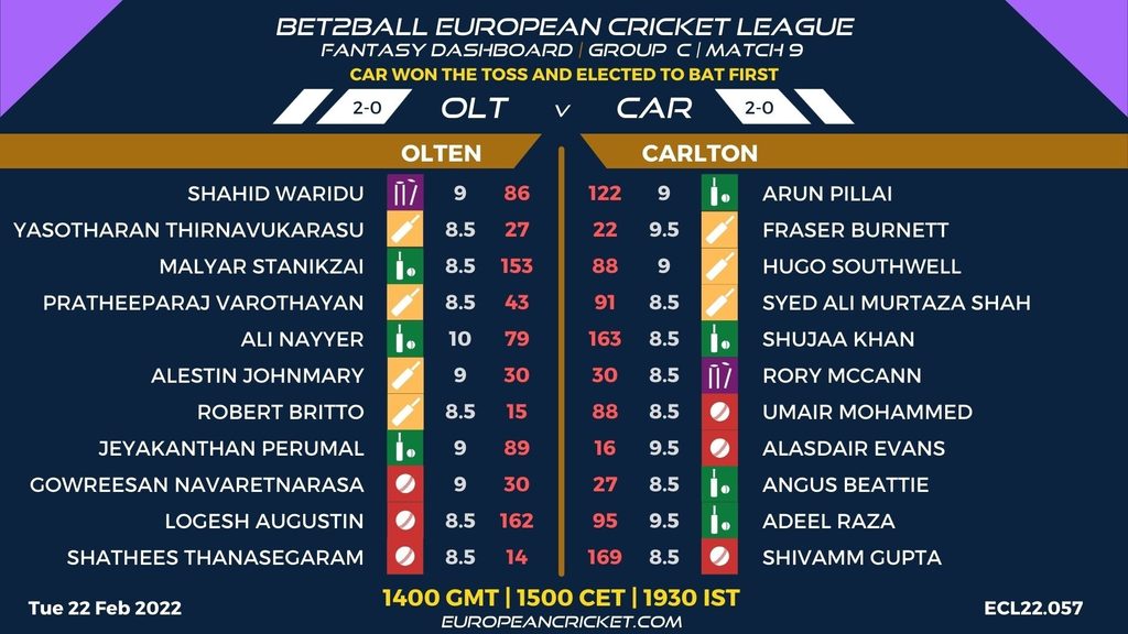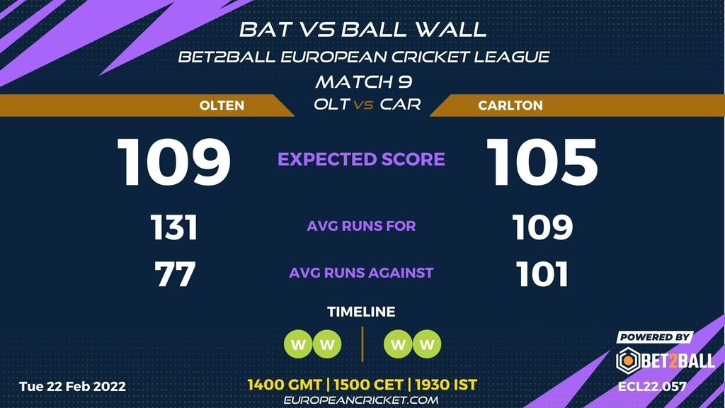 MATCH 9 (ECL22.057) OLTEN (OLT) v CARLTON (CAR) 1400 GMT | 1500 CET | 1930 IST