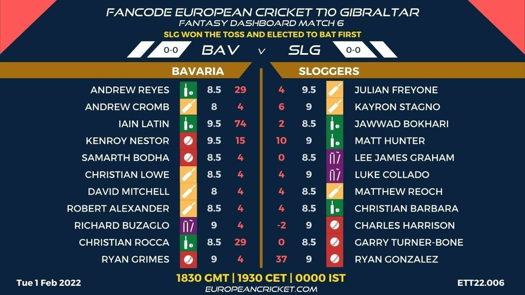 MATCH 6 (ETT22.006) BAVARIA (BAV) v SLOGGERS (SLG) 1830 GMT | 1930 CET | 0000 IST