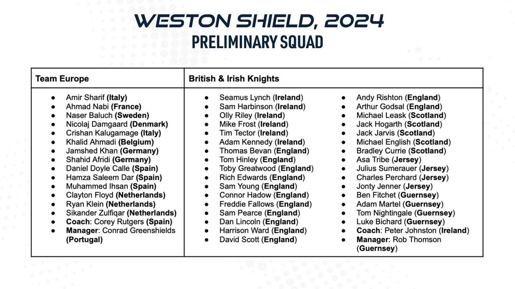 Here is the preliminary squad of invited players for the Weston Shield 2024: