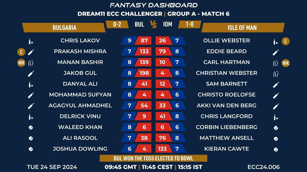 MATCH 6 (ECC24.006) BULGARIA vs ISLE OF MAN 09:45 GMT | 11:45 CEST | 15:15 IST