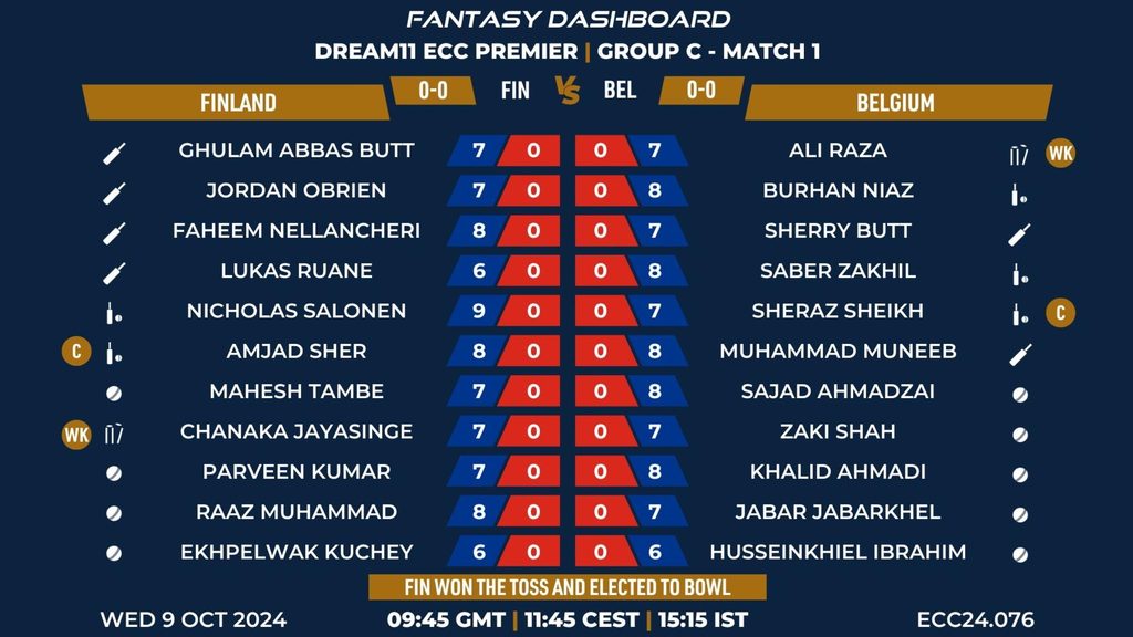 MATCH 76 (ECC24.076) FINLAND vs BELGIUM 09:45 GMT | 11:45 CEST | 15:15 IST
