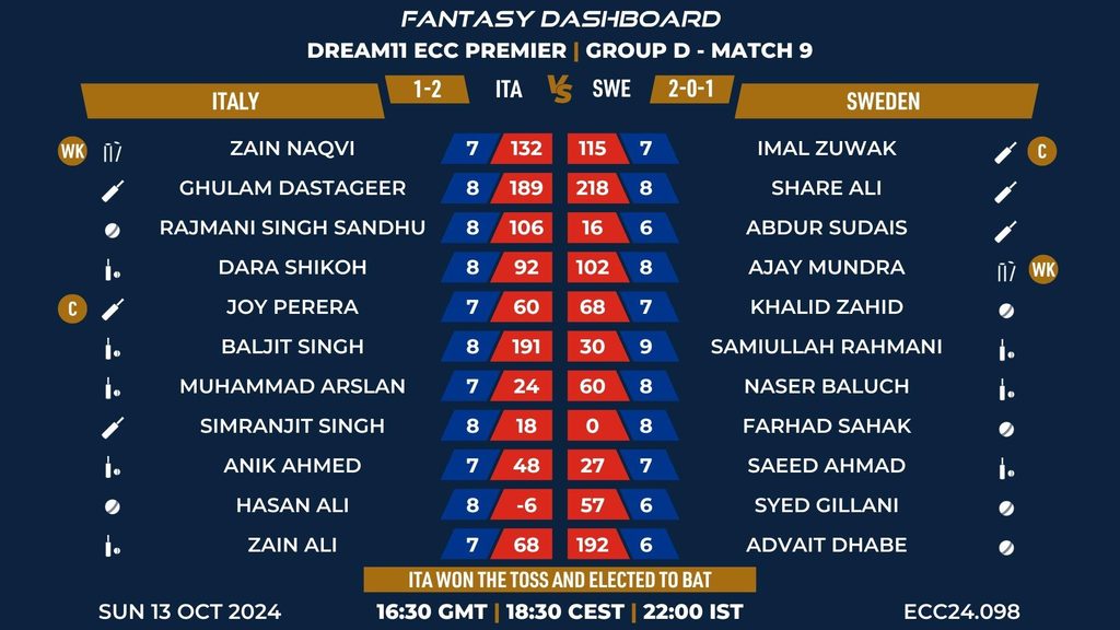 MATCH 98 (ECC24.098) ITALY vs SWEDEN 16:30 GMT | 18:30 CEST | 22:00 IST