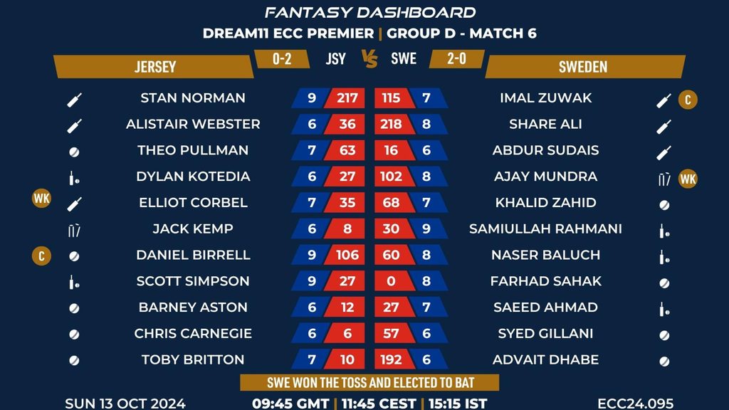 MATCH 95 (ECC24.095) JERSEY vs SWEDEN 09:45 GMT | 11:45 CEST | 15:15 IST