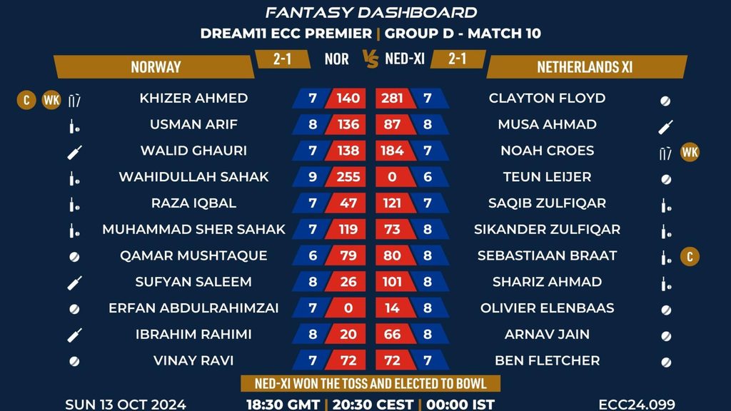 MATCH 99 (ECC24.099) NORWAY vs NETHERLANDS XI 18:30 GMT | 20:30 CEST | 00:00 IST