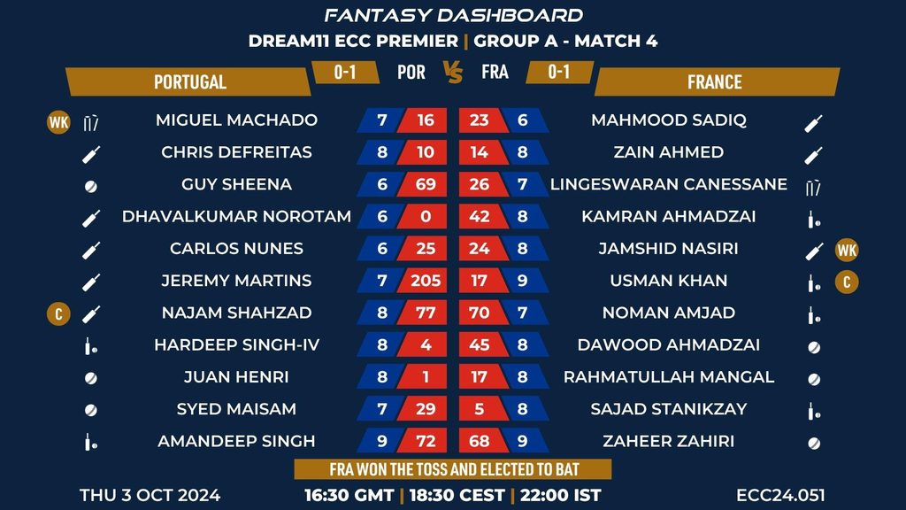 MATCH 51 (ECC24.051) PORTUGAL vs FRANCE 16:30 GMT | 18:30 CEST | 22:00 IST