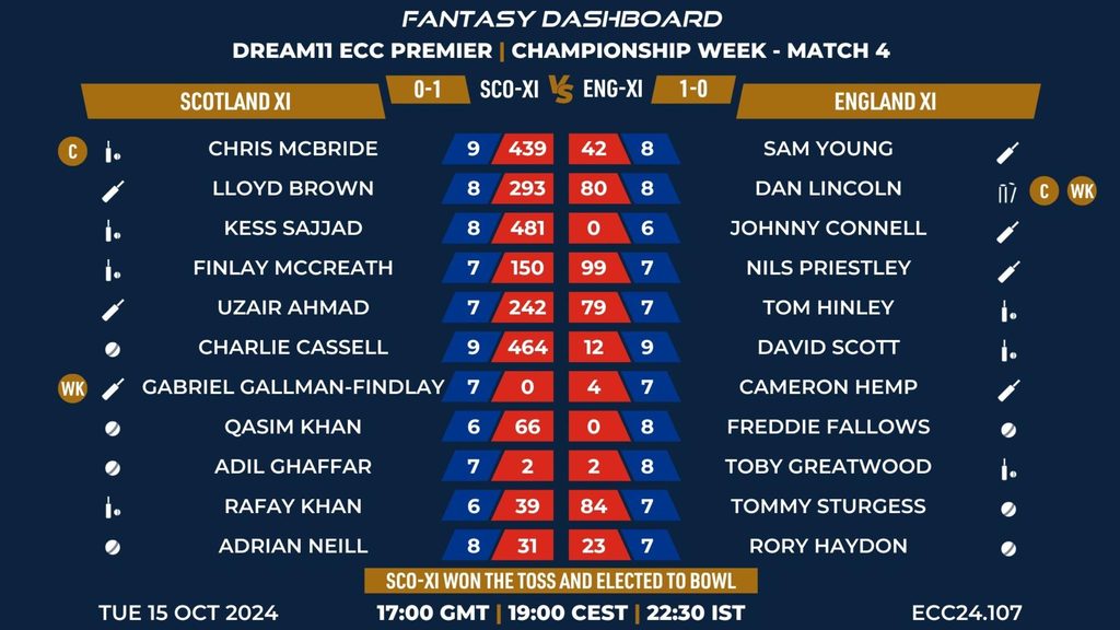 MATCH 107 (ECC24.107) SCOTLAND XI vs ENGLAND XI 16:30 GMT | 18:30 CEST | 22:00 IST