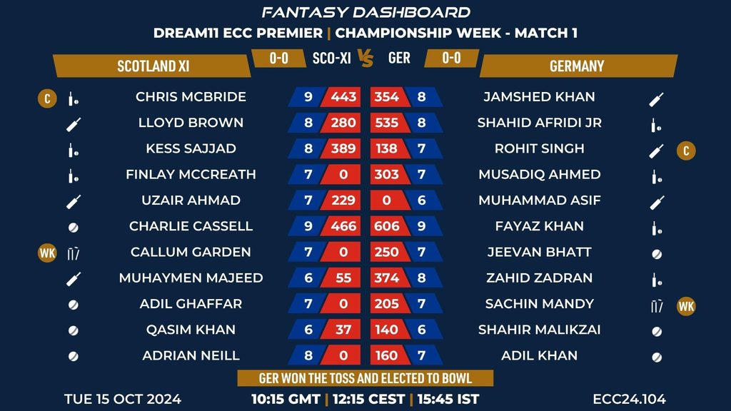 MATCH 104 (ECC24.104) SCOTLAND XI vs GERMANY 09:45 GMT | 11:45 CEST | 15:15 IST