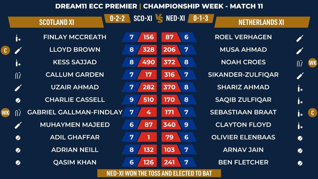MATCH 114 (ECC24.114) SCOTLAND XI vs NETHERLANDS XI 09:45 GMT | 11:45 CEST | 15:15 IST