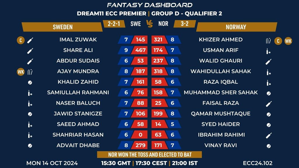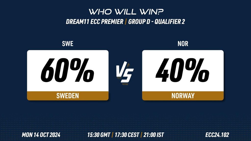 MATCH 102 (ECC24.102) SWEDEN vs NORWAY 15:30 GMT | 17:30 CEST | 21:00 IST