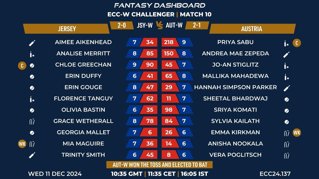 MATCH 10 (ECC24.137) JERSEY vs AUSTRIA 10:35 GMT | 11:35 CET | 16:05 IST