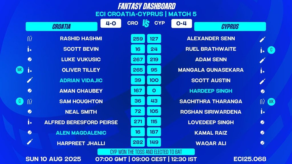 ECI Croatia-Cyprus, 2025: CRO vs CYP – Match 5 Preview