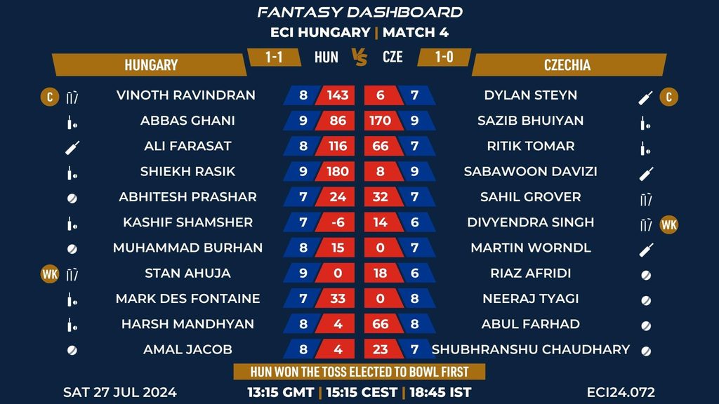 MATCH 4 (ECI24.072) HUNGARY vs CZECHIA 13:00 GMT | 15:00 CEST | 18:30 IST