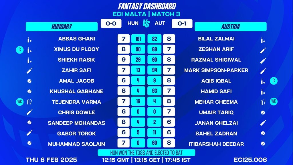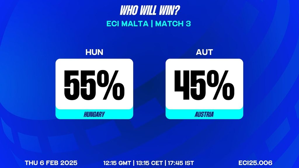 MATCH 3 (ECI25.006) HUNGARY vs AUSTRIA 12:15 GMT | 13:15 CET | 17:45 IST