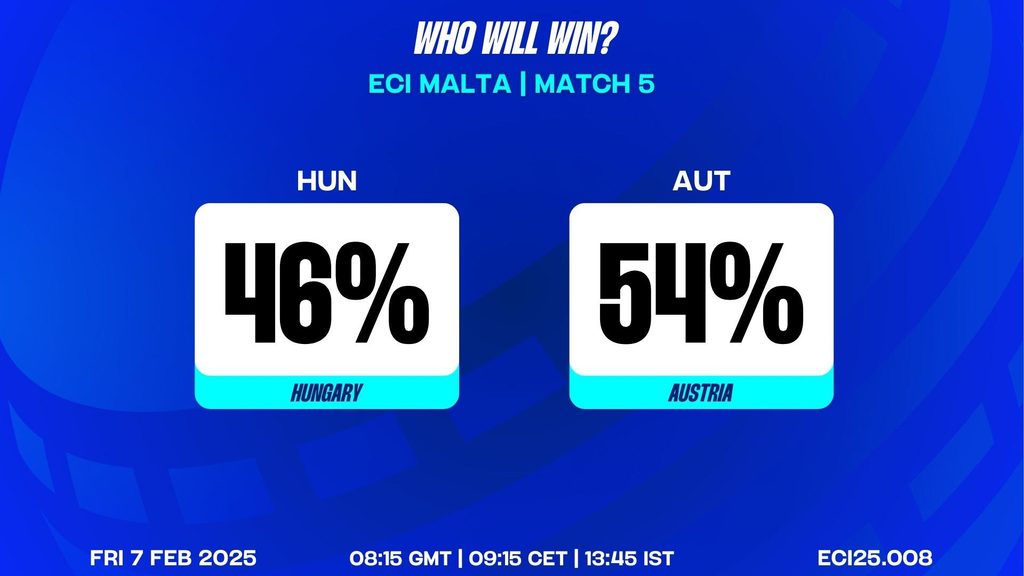 MATCH 5 (ECI25.008) HUNGARY vs AUSTRIA 08:15 GMT | 09:15 CET | 13:45 IST