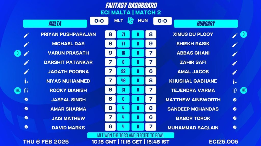 MATCH 2 (ECI25.005) MALTA vs HUNGARY 10:15 GMT | 11:15 CET | 15:45 IST