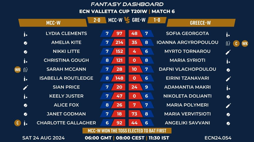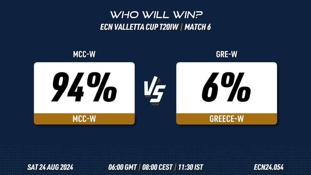MATCH 6 (ECN24.054) MCC vs GREECE 06:00 GMT | 08:00 CEST | 11:30 IST