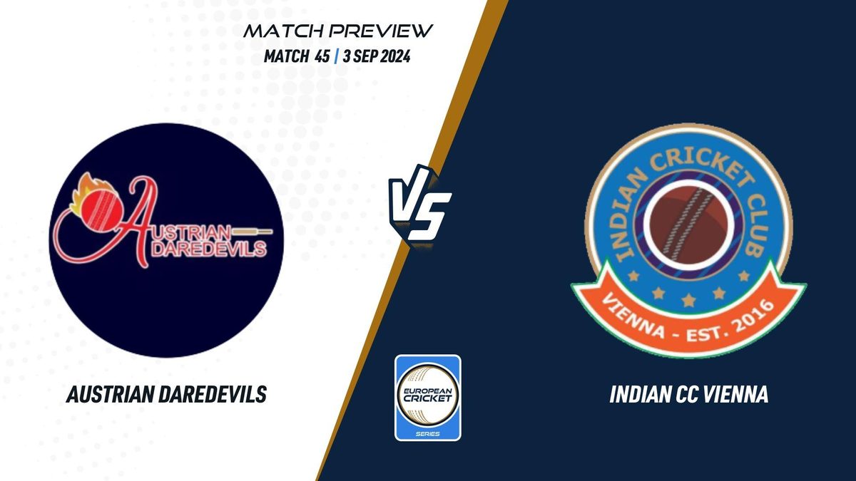 MATCH 45 (ECS24.855) AUSTRIAN DAREDEVILS vs INDIAN CC VIENNA 15:00 GMT | 17:00 CEST | 20:30 IST