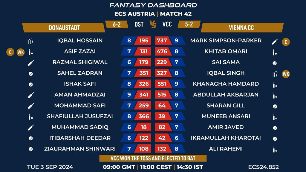 MATCH 42 (ECS24.852) DONAUSTADT vs VIENNA CC 09:00 GMT | 11:00 CEST | 14:30 IST