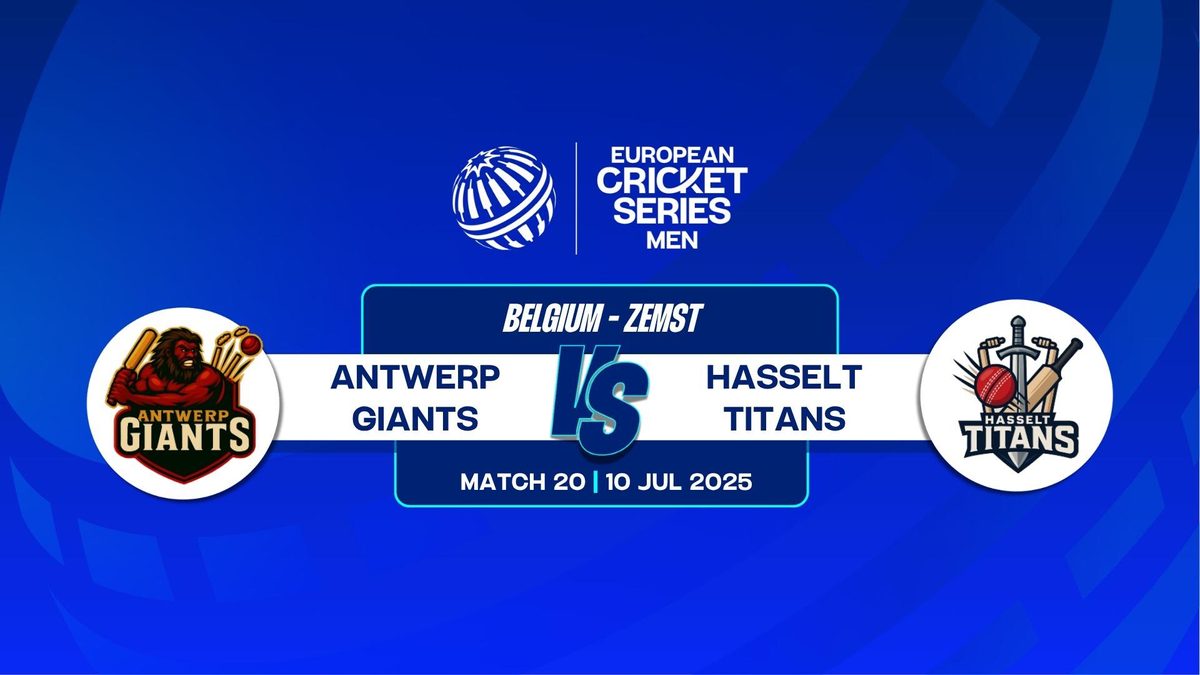 The ECS Belgium, 2025 continues to deliver high-octane T10 action as the Antwerp Giants (AG) face off against the Hasselt Titans (HT) in Match 20 of the single group stage. Scheduled for July 10, 2025, this pivotal group match will commence at 14:45 local time (17:15 IST) at the Stars Arena Hofstade, Zemst. The Antwerp Giants have won the toss and elected to field, setting the stage for a dynamic contest in this fast-paced format.