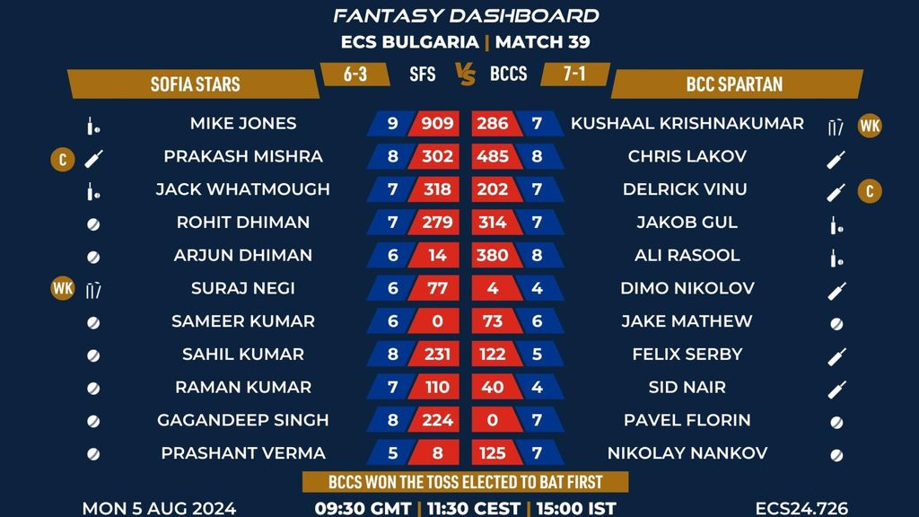 MATCH 39 (ECS24.726) SOFIA STARS vs BCC SPARTAN 09:30 GMT | 11:30 CEST | 15:00 IST