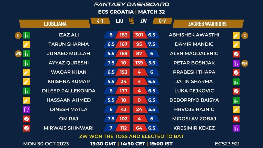 MATCH 32 (ECS23.921) LJUBLJANA vs ZAGREB WARRIORS 13:30 GMT | 14:30 CET | 19:00 IST