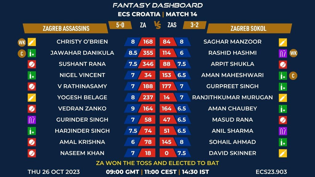MATCH 14 (ECS23.903) ZAGREB ASSASSINS vs ZAGREB SOKOL 09:00 GMT | 11:00 CEST | 14:30 IST
