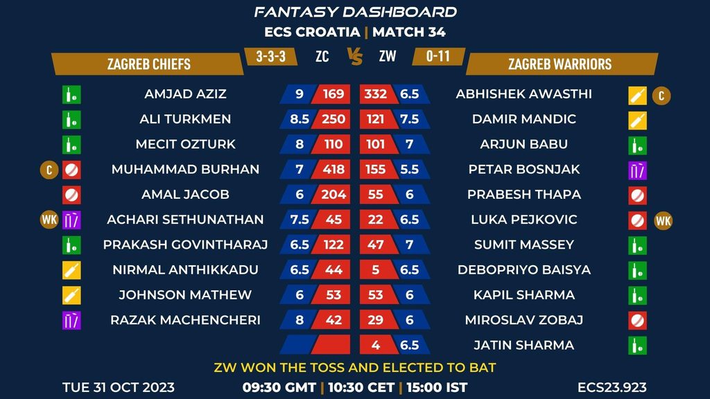 MATCH 34 (ECS23.923) ZAGREB CHIEFS vs ZAGREB WARRIORS 09:30 GMT | 10:30 CET | 15:00 IST