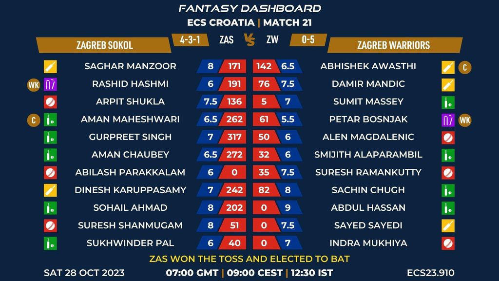 MATCH 21 (ECS23.910) ZAGREB SOKOL vs ZAGREB WARRIORS 07:00 GMT | 09:00 CEST | 12:30 IST