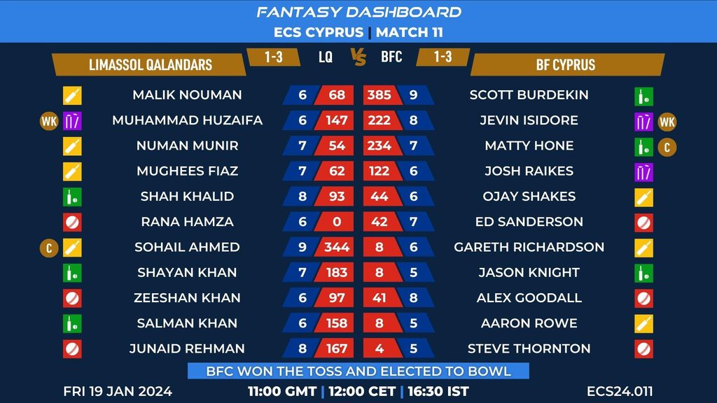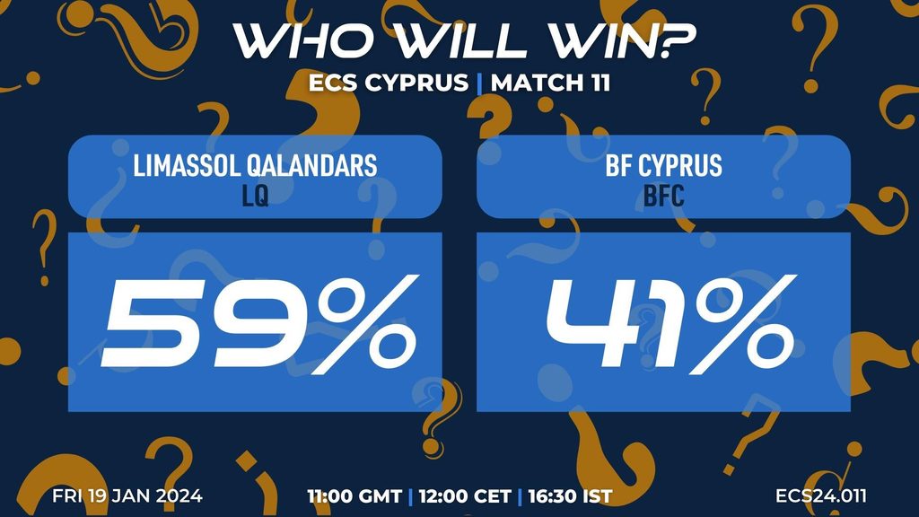 MATCH 11 (ECS24.011) LIMASSOL QALANDARS vs BF CYPRUS 11:00 GMT | 12:00 CET | 16:30 IST