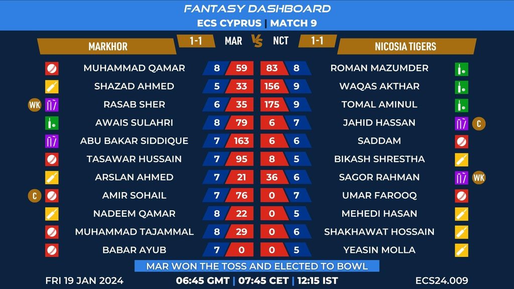 MATCH 9 (ECS24.009) MARKHOR vs NICOSIA TIGERS 06:45 GMT | 07:45 CET | 12:15 IST