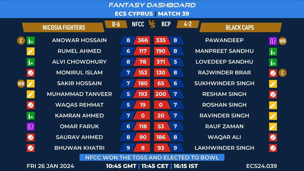 MATCH 39 (ECS24.039) NICOSIA FIGHTERS vs BLACK CAPS 10:45 GMT | 11:45 CET | 16:15 IST