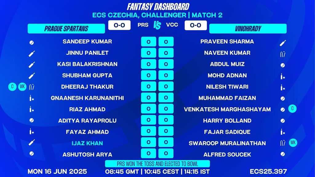 ECS Czechia, Challenger, 2025: Prague Spartans (PRS) vs Vinohrady CC (VCC) – Match Preview