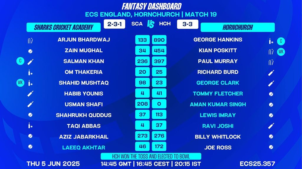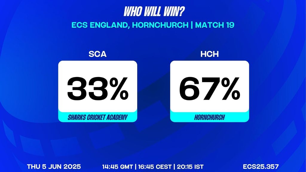 MATCH 19 (ECS25.357) Sharks Cricket Academy vs Hornchurch 14:45 GMT | 16:45 CEST | 20:15 IST