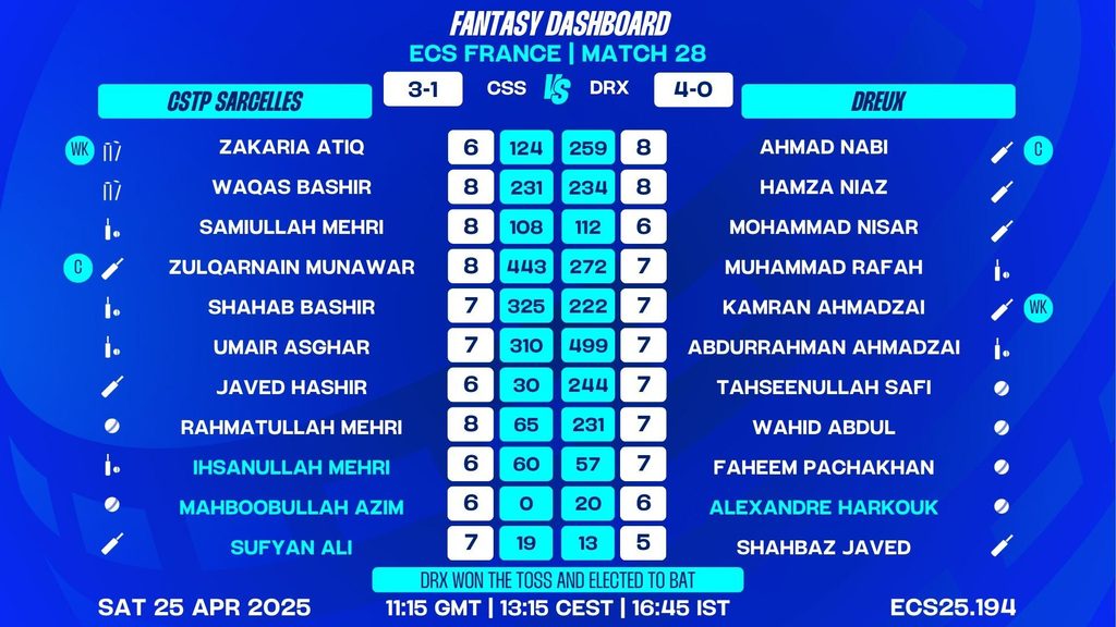 MATCH 28 (ECS25.194) CSTP Sarcelles vs Dreux 11:15 GMT | 13:15 CEST | 16:45 IST