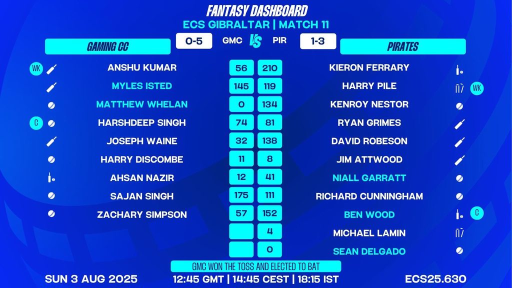 ECS Gibraltar, 2025: Gaming CC (GAM) vs Pirates (PIR) – Match 11 Preview