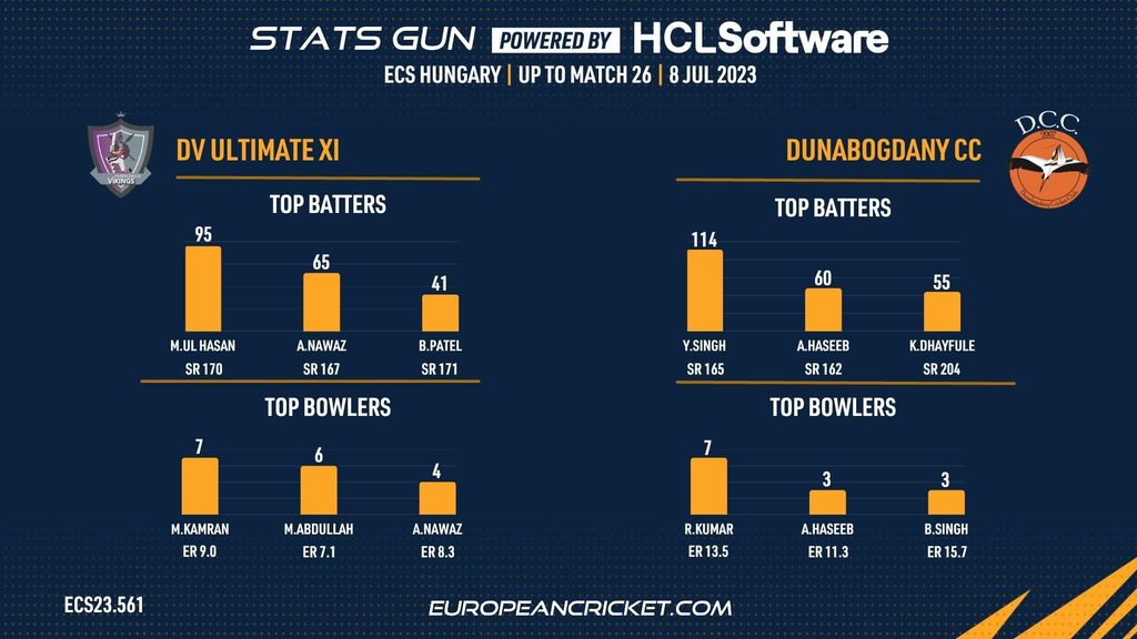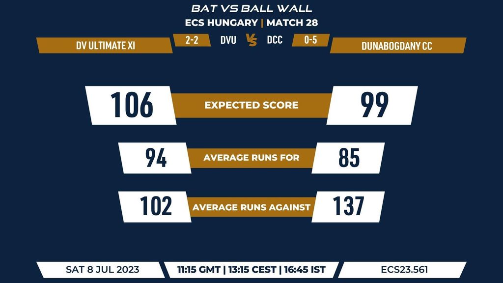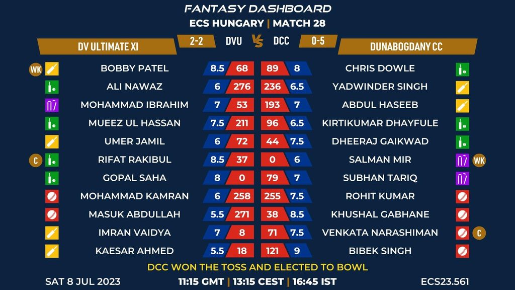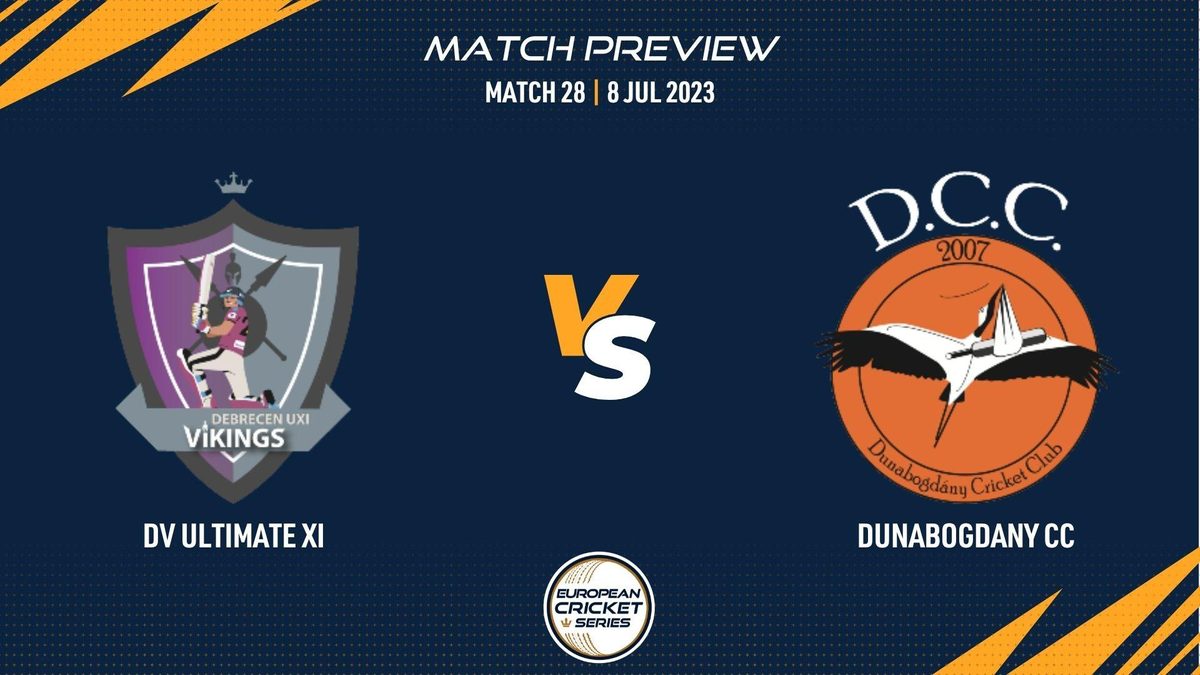 MATCH 28 (ECS23.561) DV ULTIMATE XI (DVU) vs DUNABOGDANY CC (DCC) 11:15 GMT | 13:15 CEST | 16:45 IST