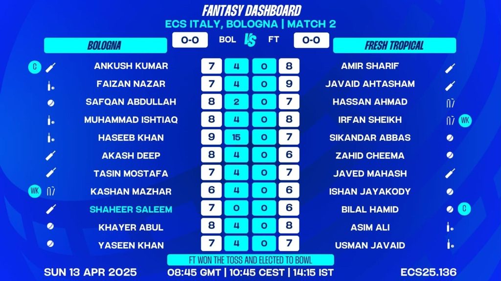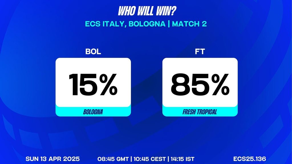 MATCH 2 (ECS25.136) Bologna vs Fresh Tropical 08:45 GMT | 10:45 CEST | 14:15 IST