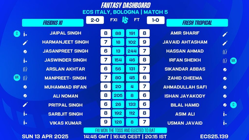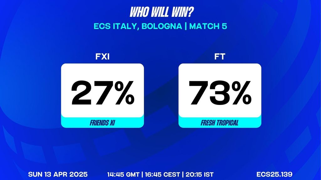 MATCH 5 (ECS25.139) Friends XI vs Fresh Tropical 14:45 GMT | 16:45 CEST | 20:15 IST
