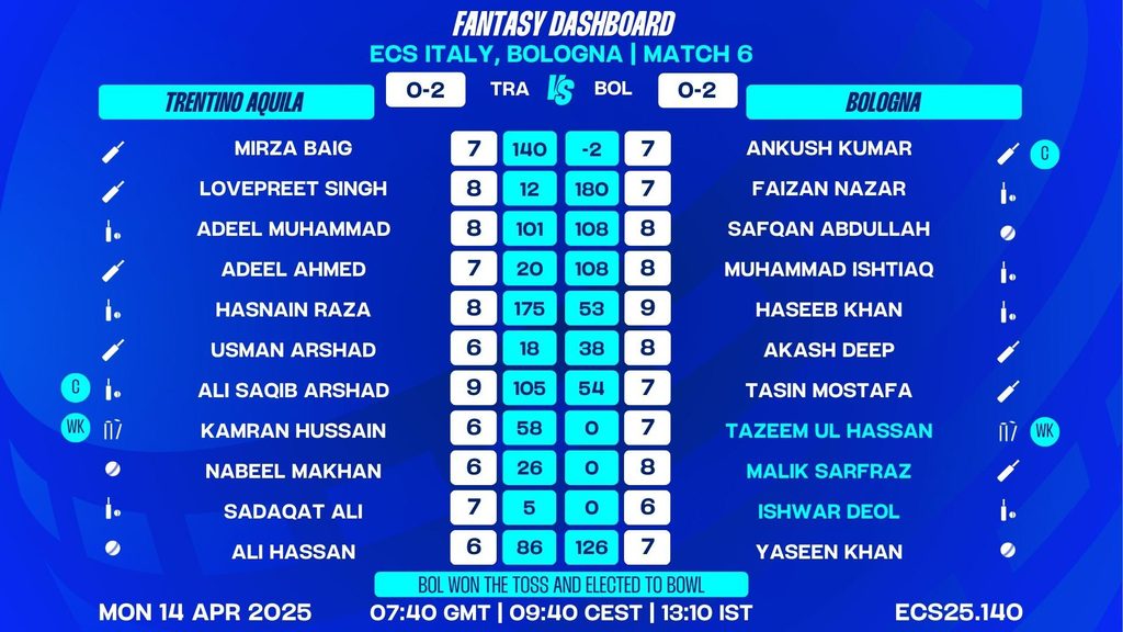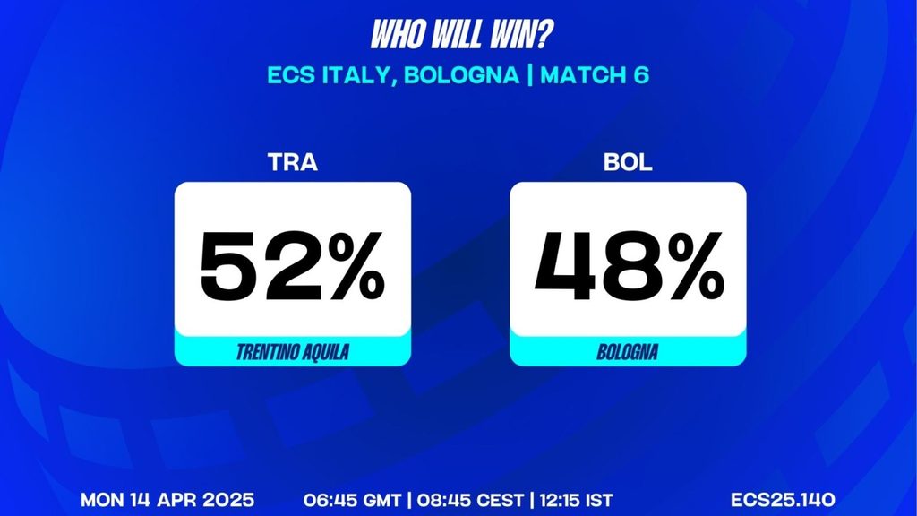 MATCH 6 (ECS25.140) Trentino Aquila vs Bologna 06:45 GMT | 08:45 CEST | 12:15 IST
