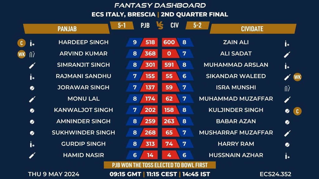MATCH 51 (ECS24.352) PANJAB vs CIVIDATE 09:15 GMT | 11:15 CEST | 14:45 IST